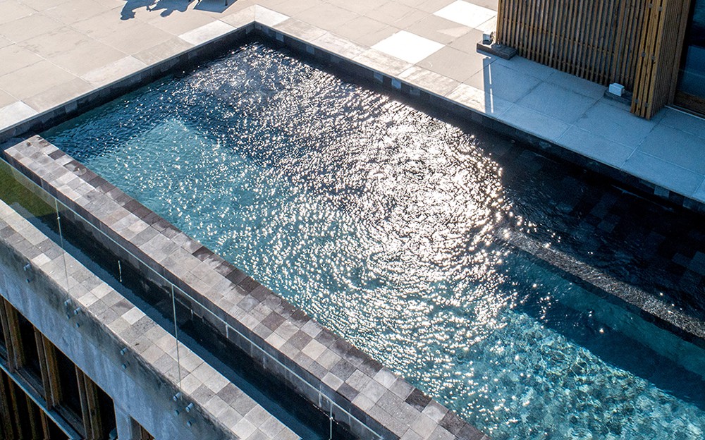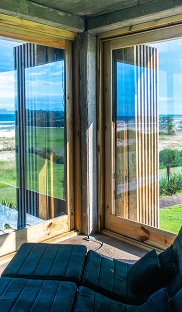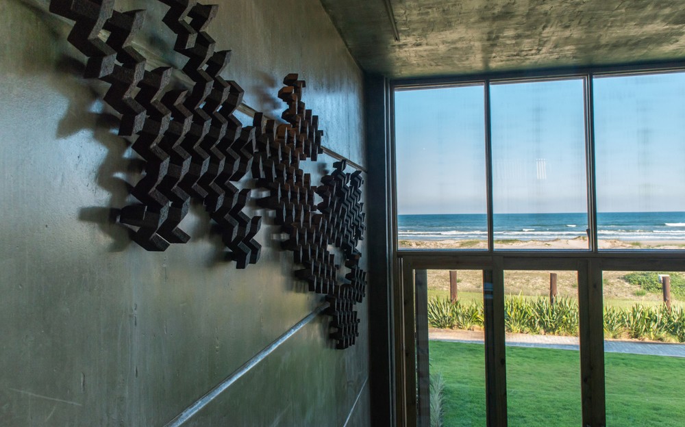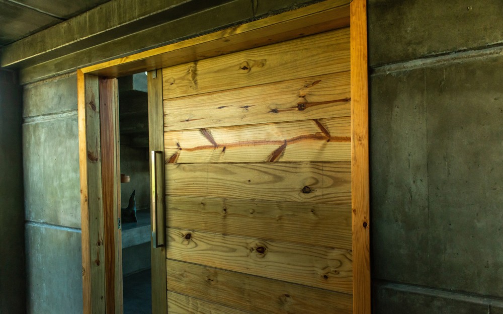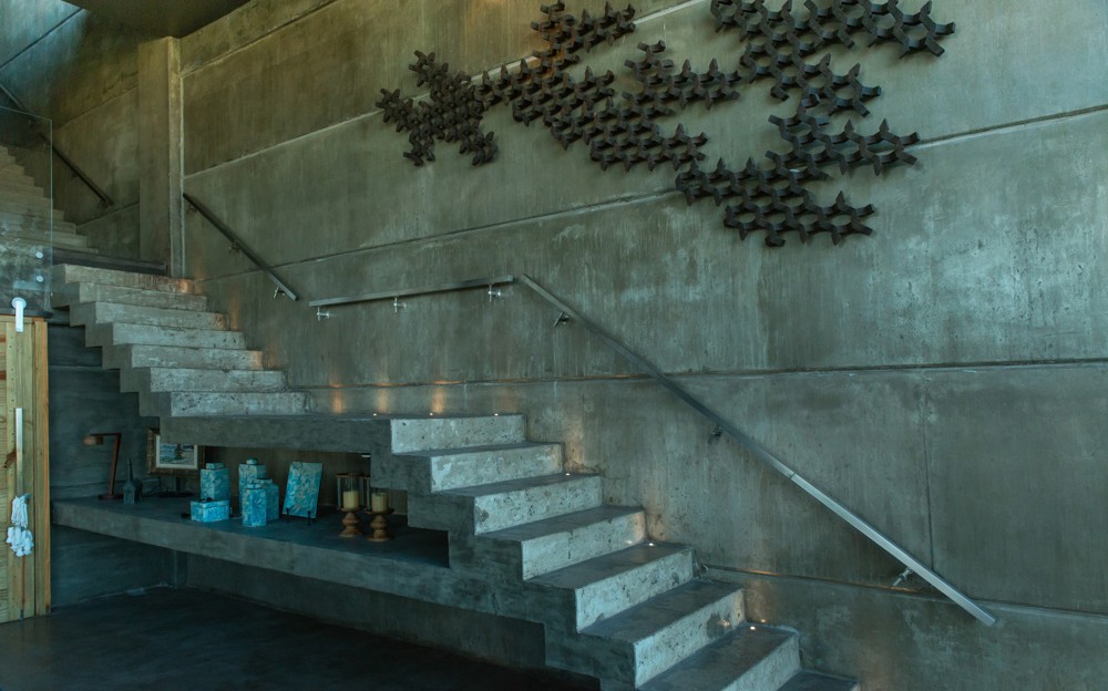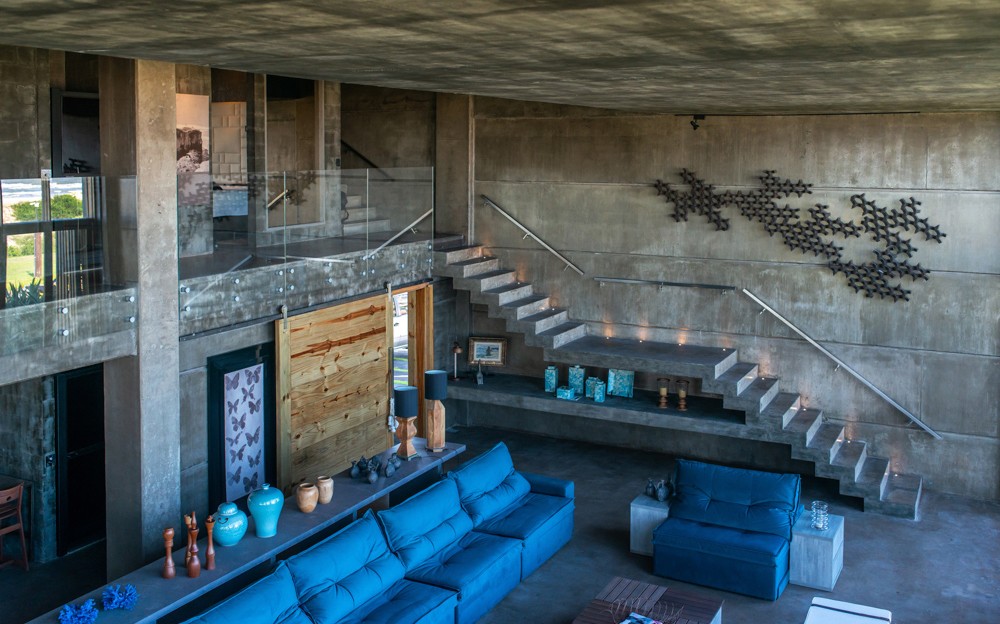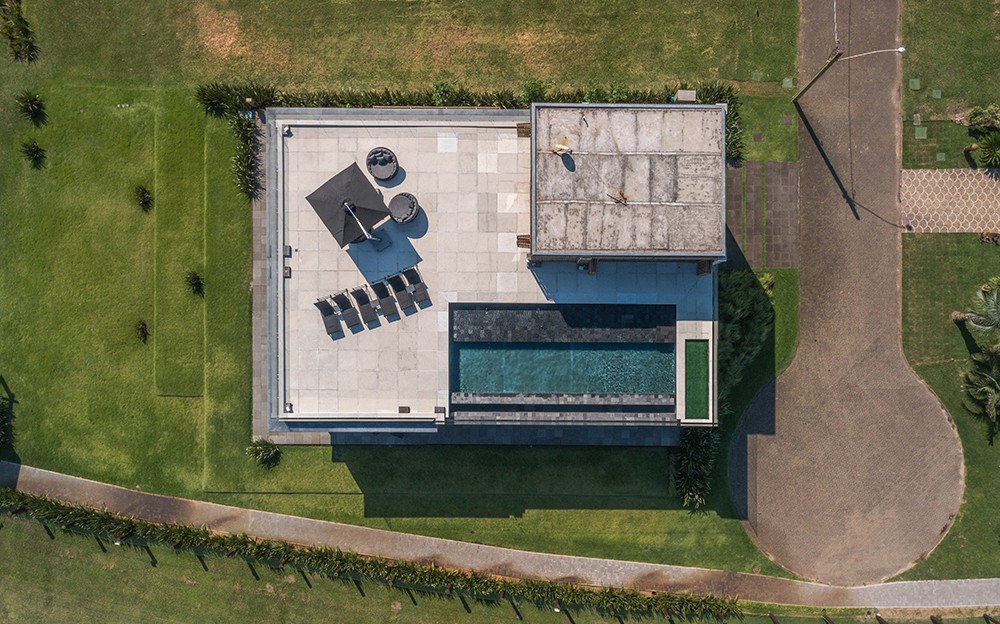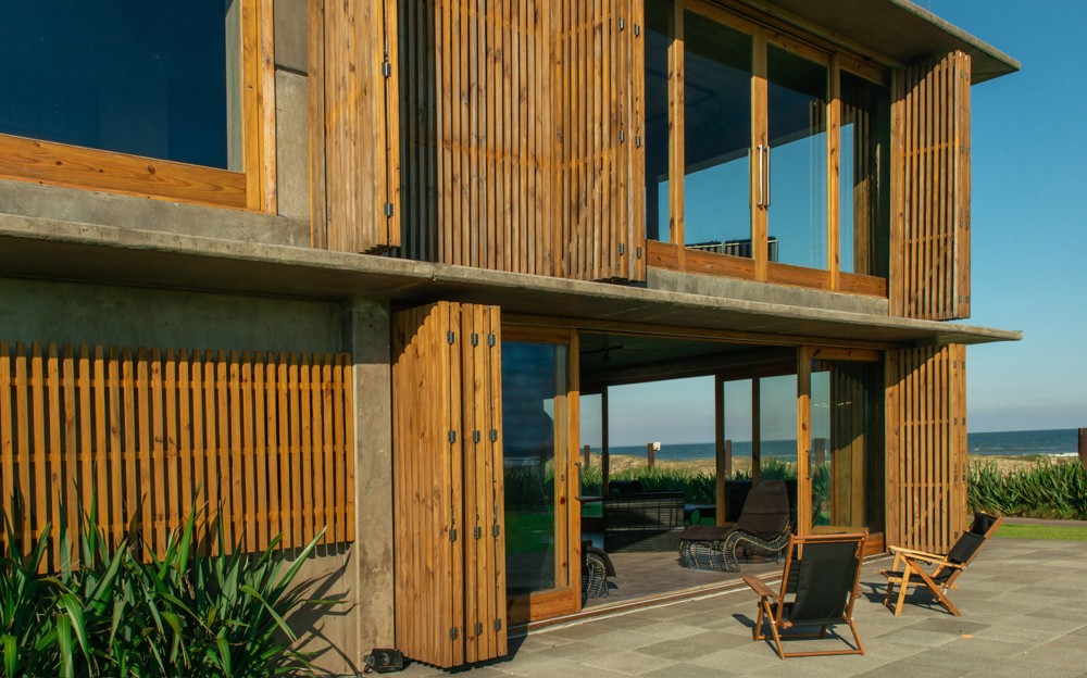 Combinar diversos materiais como concreto, vidro e madeira para uma casa elegante e acima de tudo resistente. Inúmeras soluções como ligações semi-rígidas e lajes (placas) alveolares. Com terraço panorâmico e piscina de borda infinita.