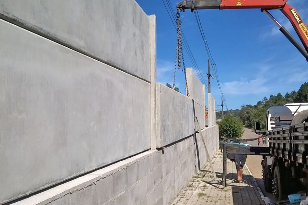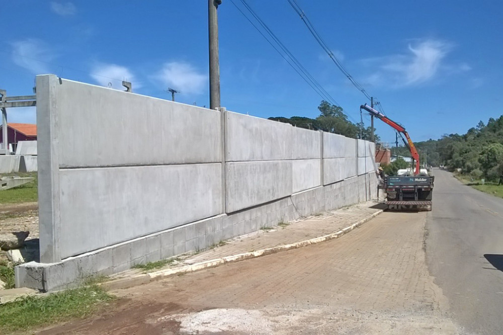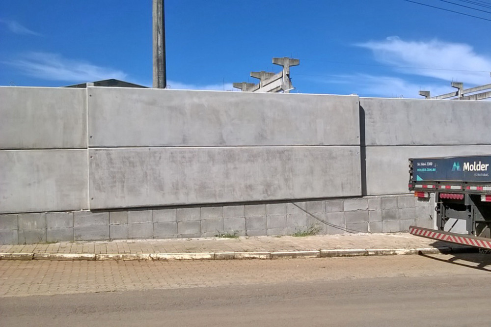 Em busca de maior segurança e valorização de seu parque fabril, a Molder investiu no fechamento de seu terreno através de muros de placas de concreto, moldados e instalados pela própria equipe da empresa. Essa obra foi de rápida execução, pouquíssimo desperdício e excelente execução, uma excelente alternativa para obras que necessitam agilidade, limpeza e eficiência.